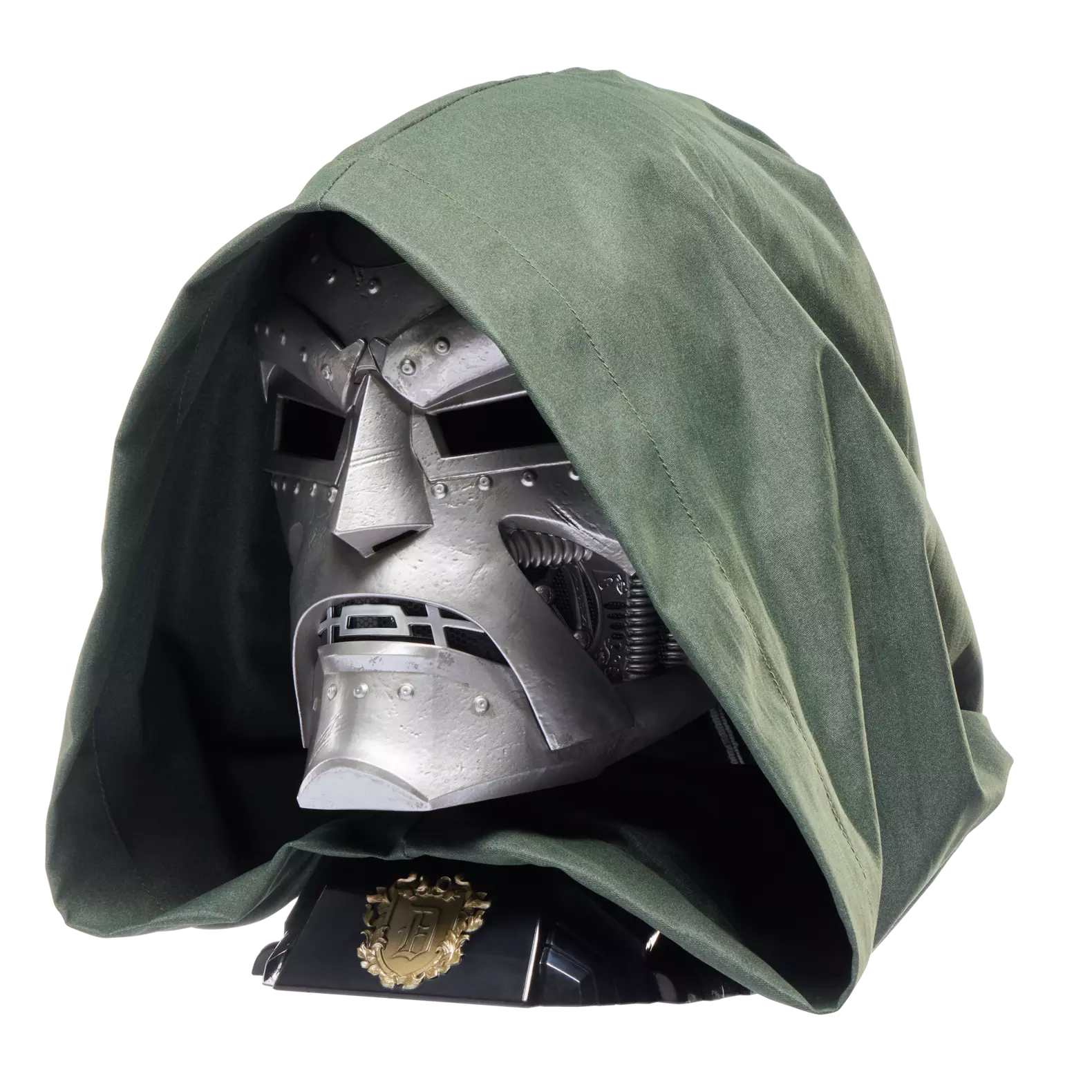This roleplay helmet with premium design and deco is inspired by the character's signature look in Marvel Comics. Marvel roleplay set comes with a green fabric hood inspired by Doctor Doom's signature robe. Includes a stand and is great for displaying in fans' collections or wearing with a Doctor Doom Halloween costume or Marvel cosplay.