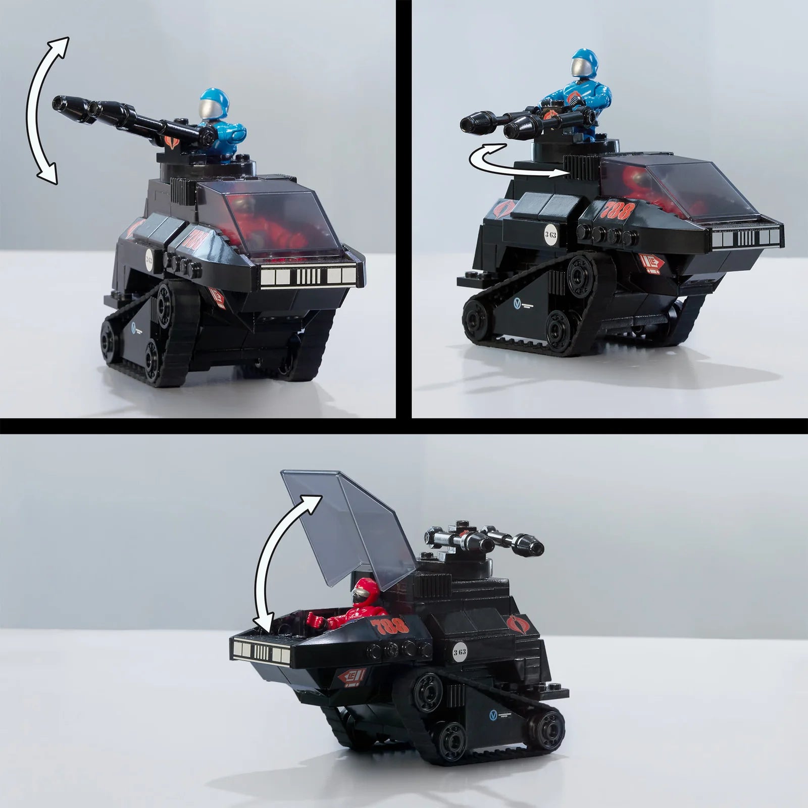 “Yo, Joe!” Relive epic rivalries and create exciting new adventures with our MEGA G.I. JOE Skystriker vs. COBRA H.I.S.S. building set. Inspired by the original ’80s designs, the two fully buildable vehicles feature authentic details and real moving parts. The four micro figures can be displayed individually on their nameplate stands or seated all at once in both vehicles for battling action on the ground and in the air.