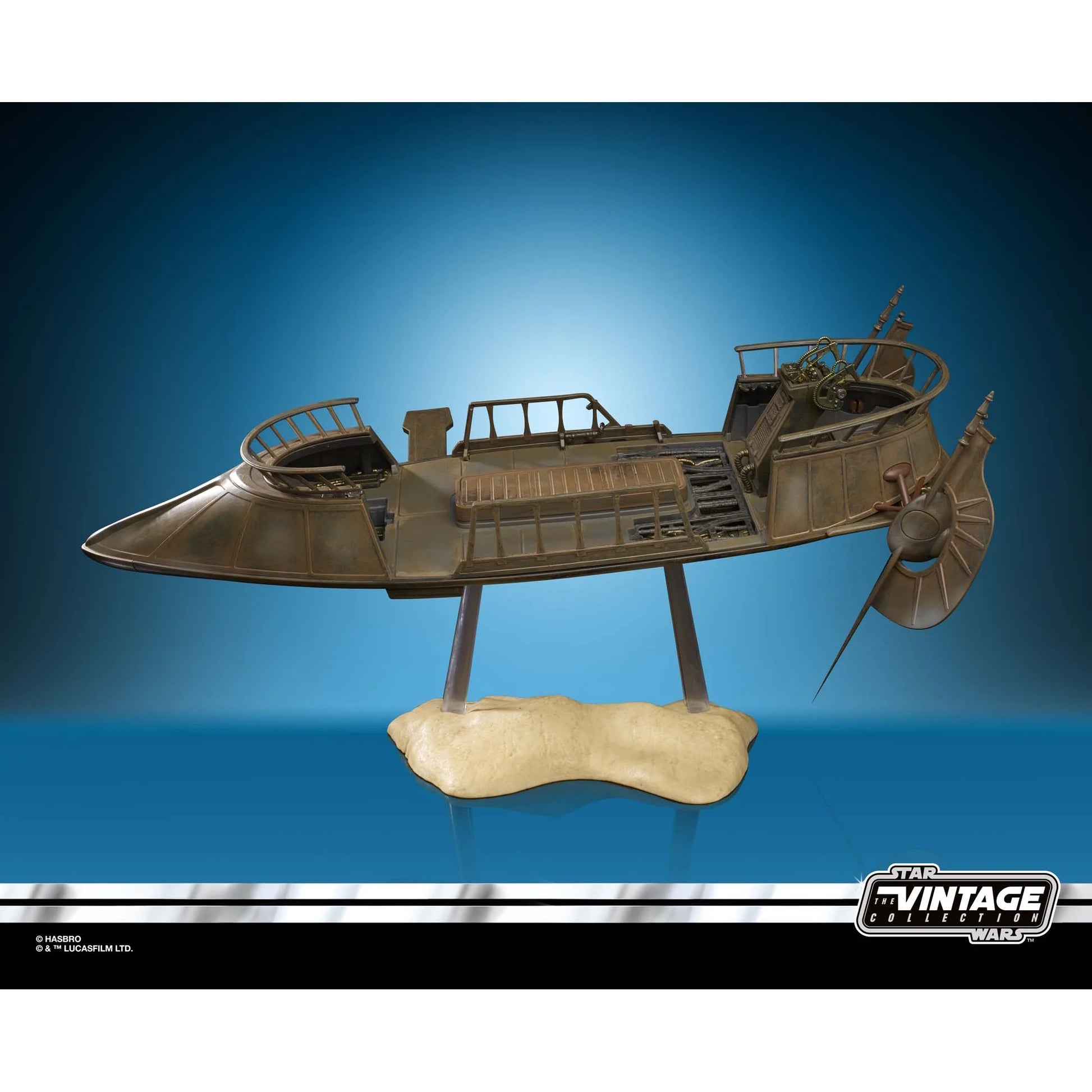 With this Star Wars The Vintage Collection Tatooine Skiff, the stage is set for fans to recreate this classic Return of the Jedi battle and imagine new adventures. This ultra-detailed Star Wars: The Vintage Collection Jabba's Tatooine Skiff Vehicle features movie-inspired design, adjustable and removable parts, and sturdy, clear display stand. Scaled to fit multiple 3.75-inch-scale action figures (each sold separately), the skiff makes an ideal addition or beginning to any Star Wars toy collection.