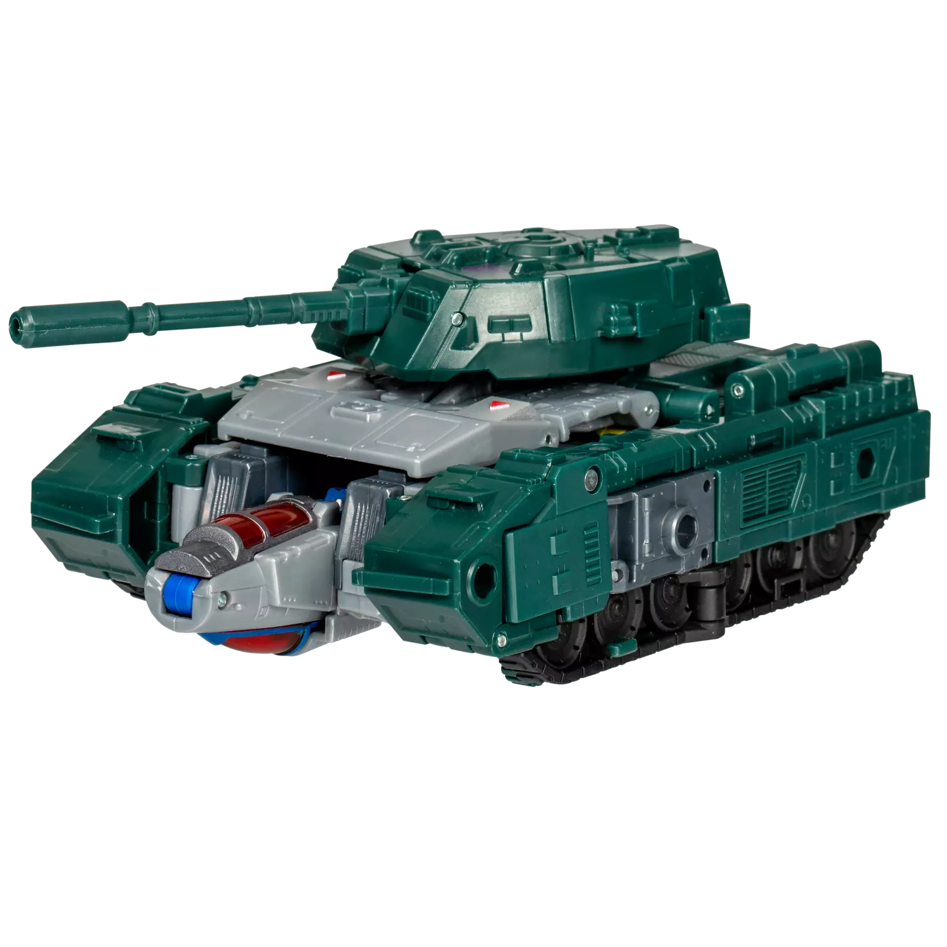 This 7.5-inch Overcharge action figure features triple conversion. It converts between robot and jet modes in 32 steps, and between jet mode and tank mode in 16 steps. The figure comes with an alt head, sword, and blaster accessories. The figure is inspired by the character from Transformers universe and features articulated head, arms, and legs for awesome action poses.