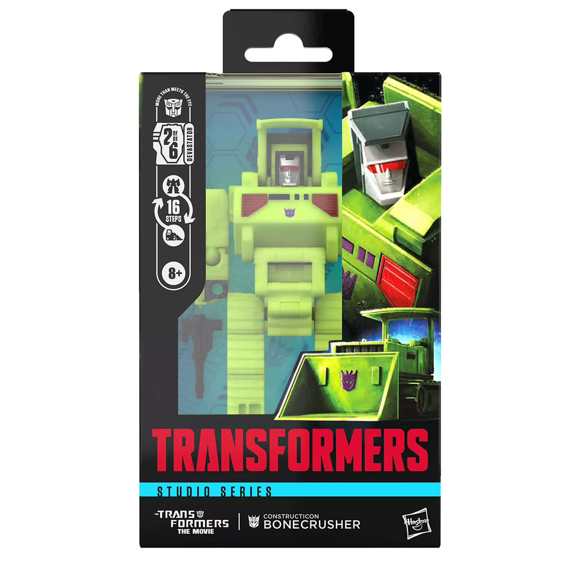 Combine the Bonecrusher figure with other Transformers Constructicon action figures to create the Devastator action figure! (Each sold separately, subject to availability.) Transformers Studio Series toys are collectible action figures that feature movie-inspired details and accessories. Convert the Studio Series Transformers action figure from robot to bulldozer mode in 16 steps. The figure has articulated head, arms, and legs for action poses.